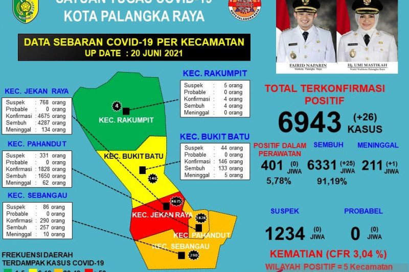Data tersebut berhasil dihimpun dari seluruh wilayah di Kota Palangka Raya mencakup lima kecamatan dan 30 kelurahan. Bertambahnya kasus Covid-19 tersebut menurut wanita yang menjadi wakil wali kota pertama di Palangka Raya itu juga bentuk keberhasilan tim kesehatan dalam melakukan penelusuran kontak erat antara masyarakat dengan pasien positif.