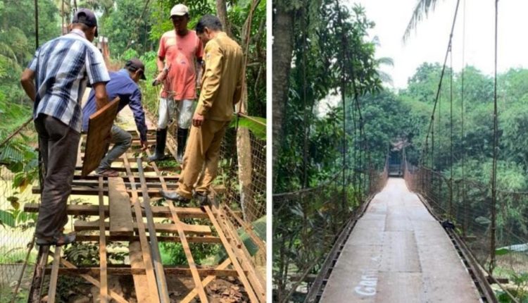 Cimarga – Pemerintah Desa Intenjaya, Kecamatan Cimarga, Kabupaten Lebak melakukan perbaikan jembatan gantung dengan anggaran rehab dari Dana Desa.