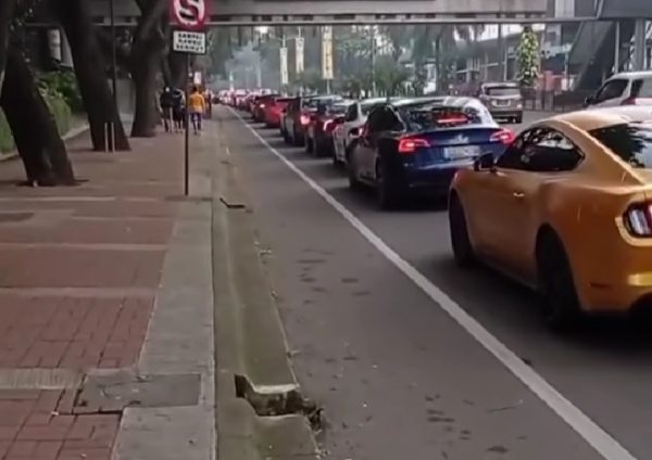 Rombongan mobil mewah berjejer melintas di jalan ramai. Aksinya pun terekam kamera netizen.