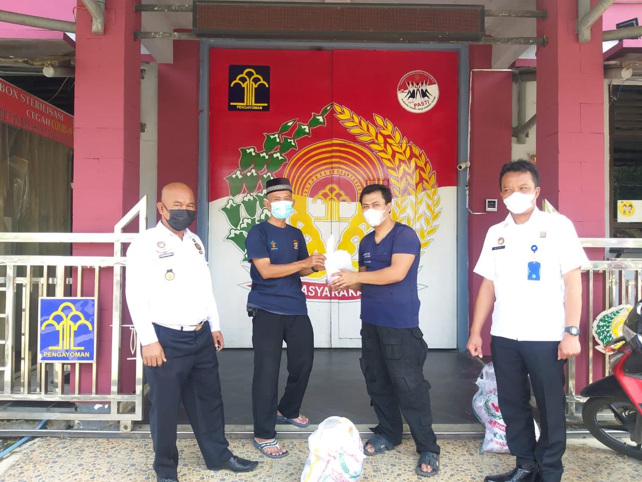 Dikesempatan yang sama, Kepala Kesatuan Pengamanan Rutan dengan didampingi oleh Pembimbing Kerohanian rutan melakukan penyerahan daging kurban yang dilakukan secara simbolis kepada warga.