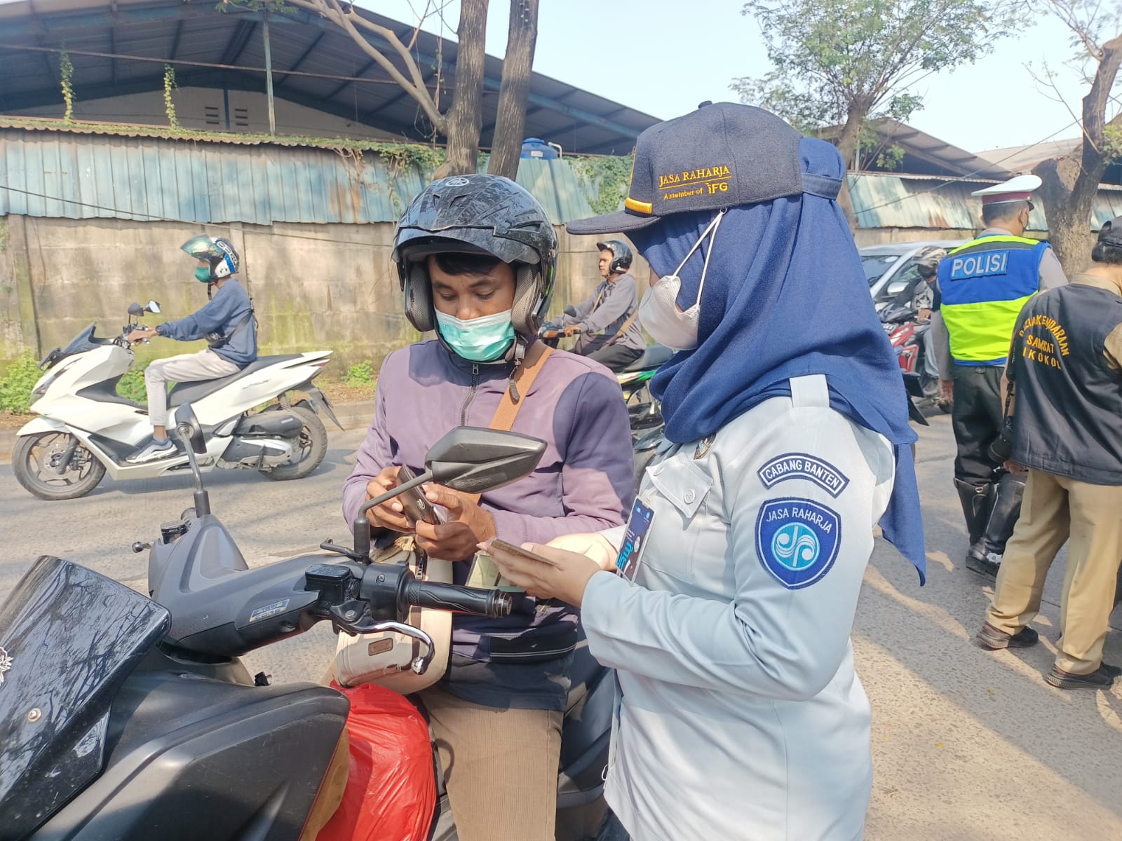 Petugas Jasa Raharja Perwakilan Tangerang Cabang Banten juga aktif berpartisipasai pada operasi Gabungan tersebut dengan menugaskan 3 orang Personil dilapangan untuk melakukan pengecekan langsung masa berlaku SWDKLLJ & IWKBU kendaraan yang terjaring Razia tersebut, kami mengingatkan kepada pemilik kendaraan agar tepat waktu melakukan proses pengesahaan STNK setiap tahun serta melunasi SWDKLLJ dan PKB sebelum jatuh tempo,”Ujar Ahmad Arif Budiman selaku Penanggung Jawab Jasa Raharja SAMSAT Cikokol”. Kegiatan Razia Bersama ini juga kami manfaatkan sebagai ajang sosialisai kepada pemilik kendaraan bermotor baik umum ataupun pribadi tentang manfaat dari SWDKLLJ & IWKBU sesuai ketentuan UU 33 & 34 sebagai perlindungan dasar bagi pengguna jalan dan penumpang angkutan umum dari resiko kecelakaan lalu lintas.
