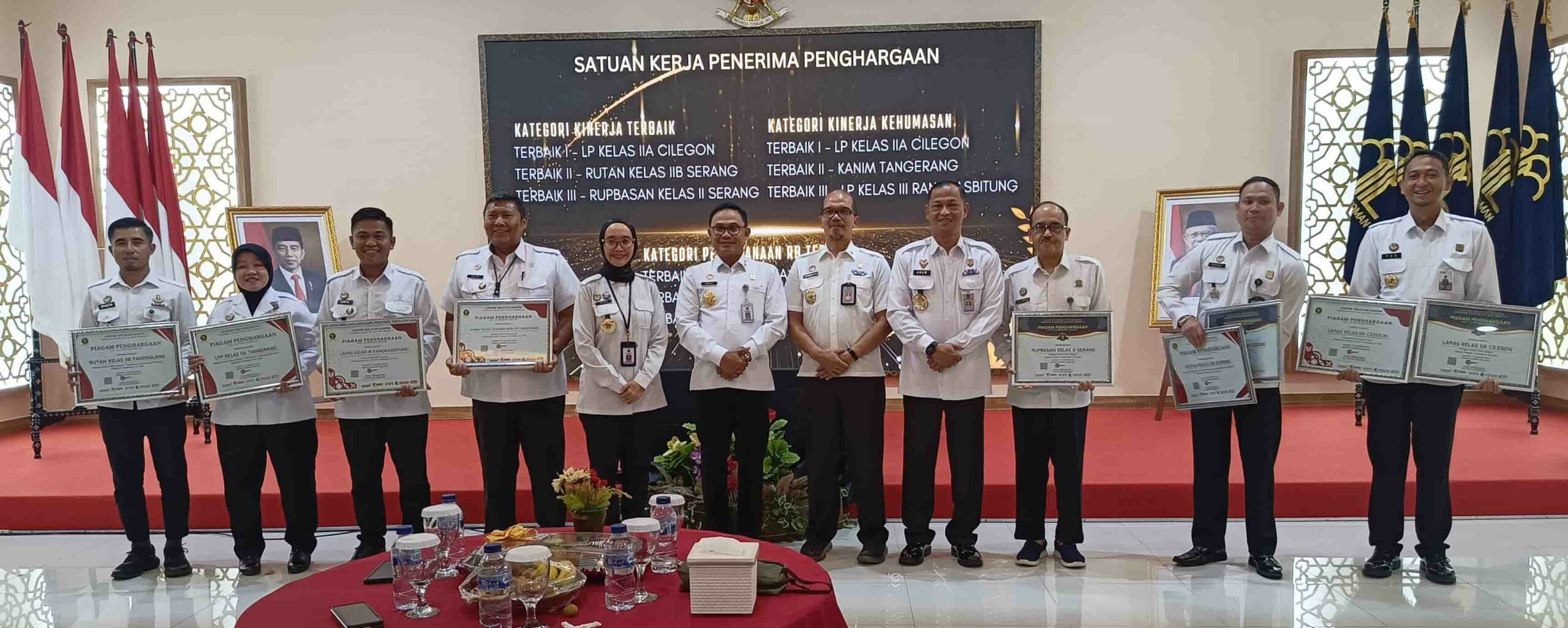 Serang – Lembaga Pemasyarakatan (Lapas) Perempuan Kelas IIA Tangerang menerima penghargaan atas kinerja terbaik dalam pelaksanaan Reformasi Birokrasi Semester I Tahun Anggaran 2024. Penghargaan ini diserahkan dalam acara Rapat Koordinasi Evaluasi Capaian Kinerja Semester I dan Percepatan Kinerja Semester II Tahun 2024 bertajuk “Optimalisasi Capaian Kinerja untuk Kanwil Banten Semakin Pasti dan Berdampak,” yang berlangsung di Aula Bale Soepomo.