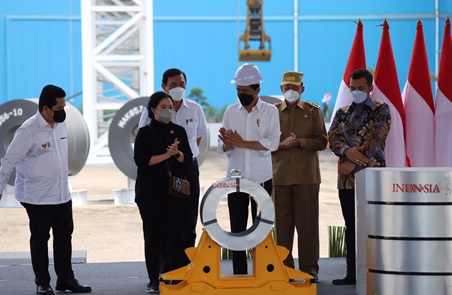 Usai meninjau, Presiden kemudian menuju lokasi peresmian Hot Strip Mill 2.