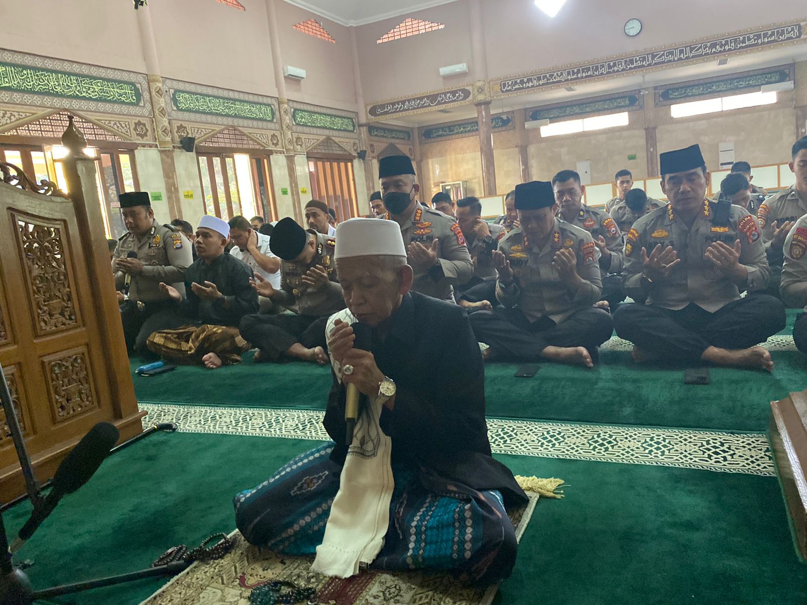 Serang – Polda Banten gelar Sholat Lidaf’il Bala (tolak bala) dalam memperingati tradisi Rebu Wekasan di masjid Baiturrahman Polda Banten pada Rabu (21/09).