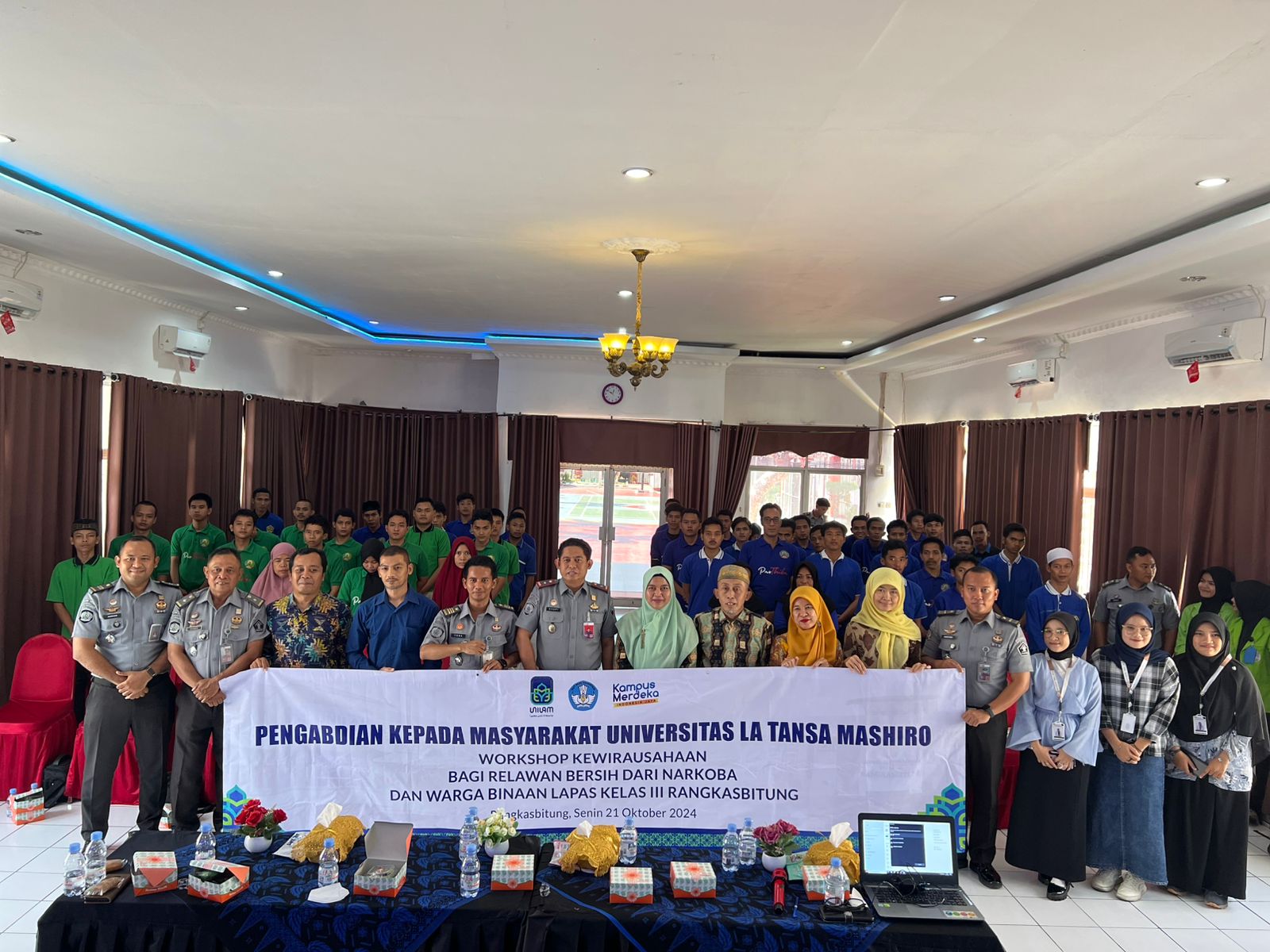 Rangkasbitung – Lapas kelas III Rangkasbitung Kanwil Kemenkumham Banten bekerjasama dengan Universitas Latansa Mashiro menggelar kegiatan pengabdian masyarakat dalam bentuk workshop yakni program pengembangan kewirausahaan bagi relawan bersih dari Narkoba dan Warga Binaan Pemasyarakatan Lapas Rangkasbitung, Senin (21/10)