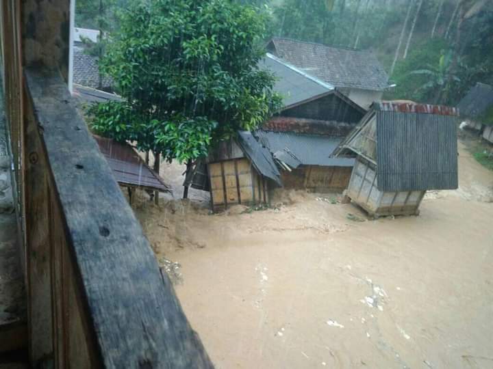 Nana melanjutkan, kronologis terjadinya Banjir berawal dari hujan deras yang menyebabkan tebing longsor dekat aliran sungai kecil Cimanggu yang mengakibatkan aliran sungai meluap / tersendat oleh material tanah. Sehingga, air sungai tersebut masuk kehalaman rumah warga.