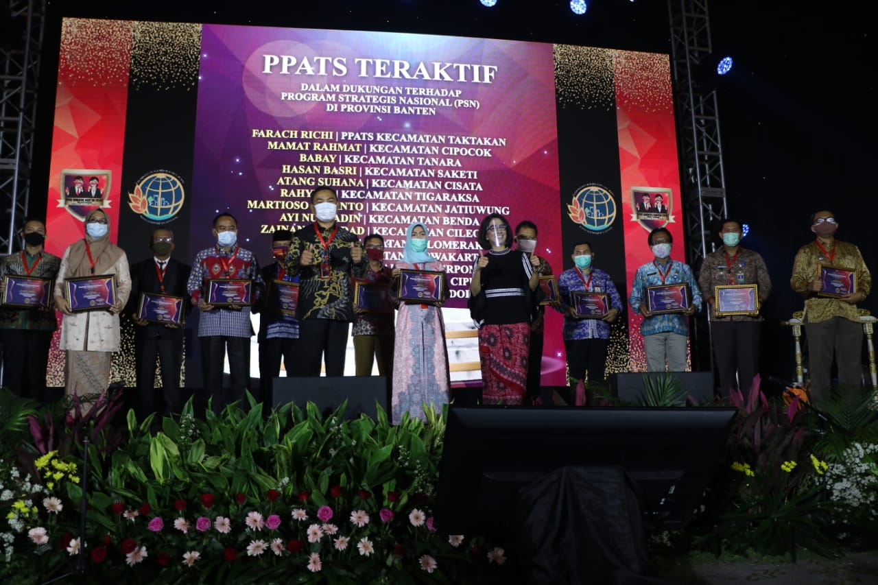 PPAT Award Provinsi Banten 2020 iji sebagai PPAT Teraktif Dalam Dukungannya Terhadap Program Strategis Nasional (PSN) Provinsi Banten.