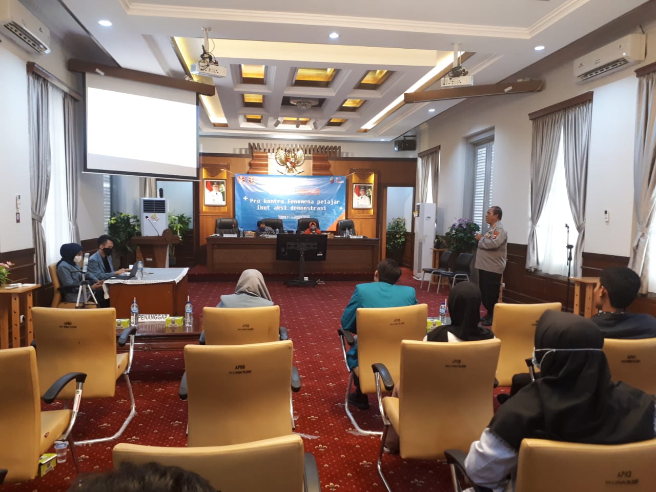 Adapun diskusi publik kali ini mengangkat tema tentang Pro dan Kontra Fenomena Pelajar Ikut Aksi Demonstrasi.