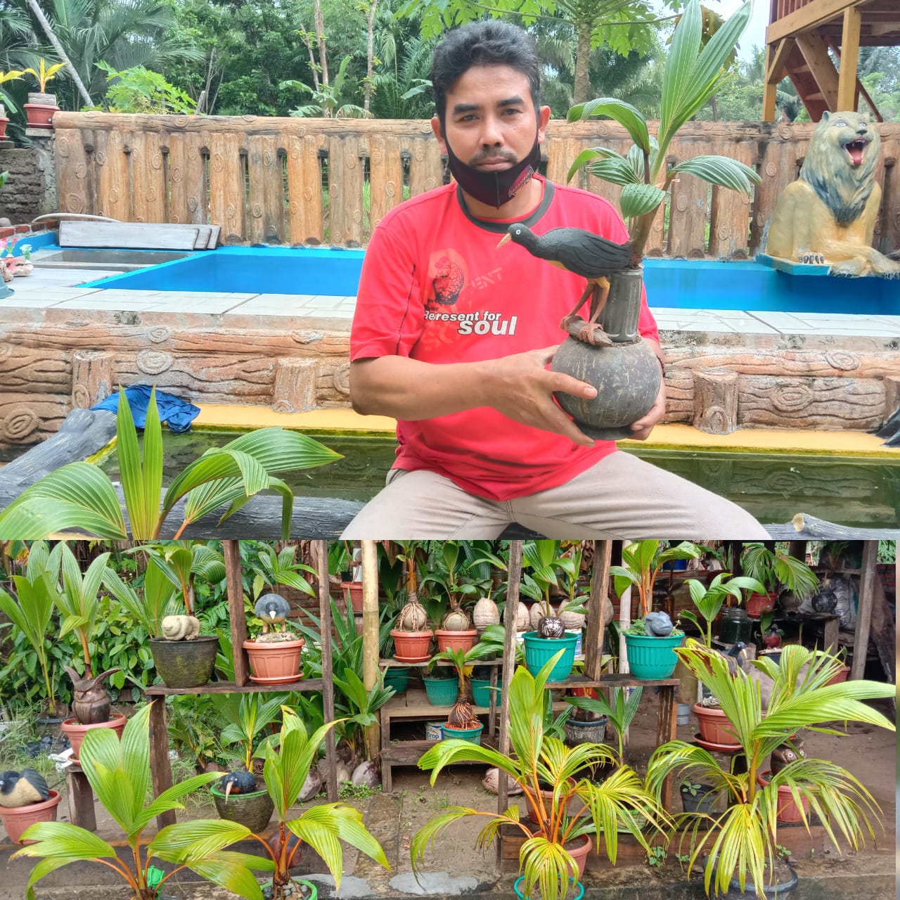 “Untuk akuarium harga hingga Rp. 3.500.000 (1 Set), Bonsay Kelapa Rp. 300.000 – Rp. 700.000, sedangkan untuk kerajinan tangan dari batok teko, gelas cangkir (1 set) Rp. 250.000,” ungkapnya.
