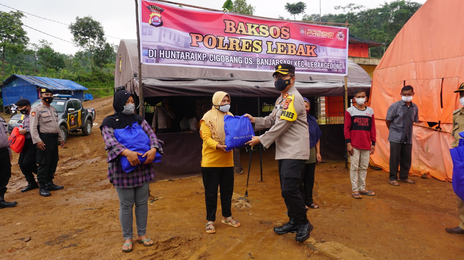 Dalam Kegiatan Bakti Sosial tersebut Kapolres Lebak AKBP Ade Mulyana memberikan bantuan paket sembako kepada warga Huntara sebanyak 250 Paket.
