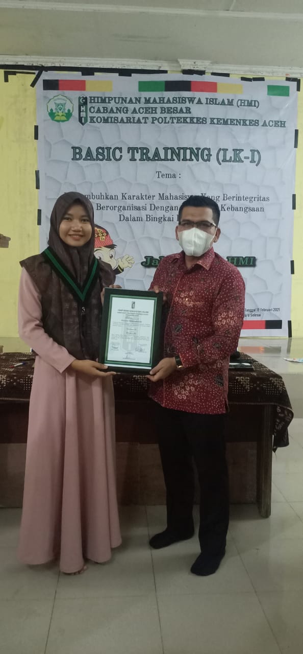 Banda Aceh – Ketua Badan Kehormatan Dewan (BKD) DPR Aceh Sulaiman, SE tampil memberikan materi kepada peserta Basic Training HMI (LK-1) Komisariat Poltekkes Aceh Cabang Aceh Besar untuk membekali semangat dan motivasi peserta pelatihan.