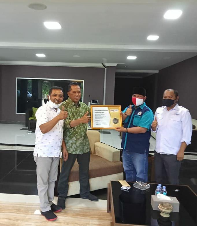 Penghargaan diserahkan oleh Ketua PWI Lebak, Fahdi Khalid dan Ketua SMSI Lebak, Achmad Syarif.