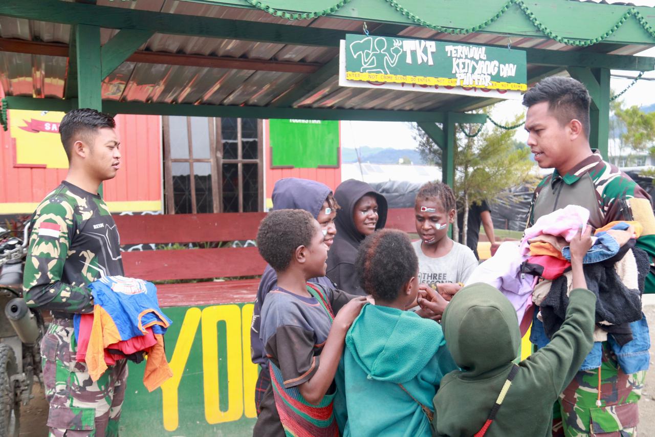 “Adik-adik mari sini. Om mau buat lomba cerdas cermat. Siapa yang bisa jawab nanti om kasih hadiah”, tegas Praka Marsanto.