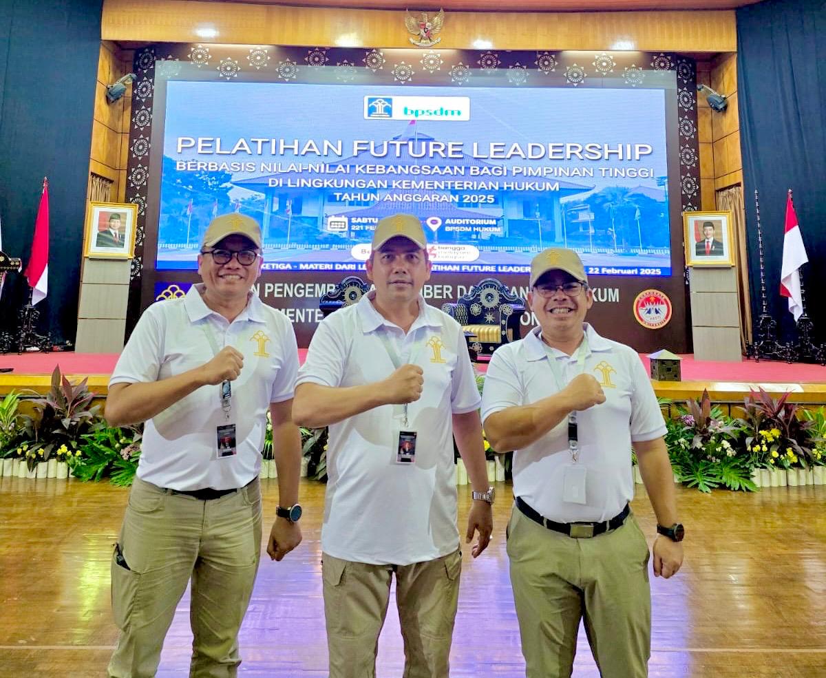 Kakanwil Kemenkum Malut, Budi Argap Situngkir, Kadiv Pelayanan Hukum, Chusni Thamrin, dan Kadiv P3H, Zulfahmi hadir sebagai peserta future leadership berkomitmen mendukung langkah Menkumham, Supratman dalam memperkuat semangat bela negara.