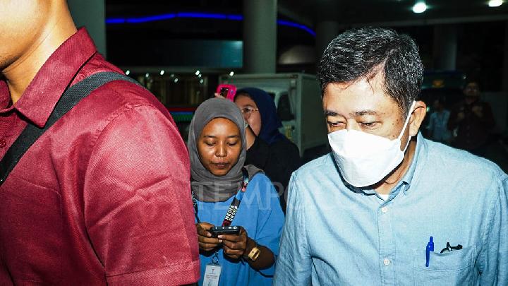 Alfian yang memakai kemeja biru ke luar meninggalkan Menara Kartika Kejagung memakai masker.Ia pun tak banyak menjawab pertanyaan wartawan saat ke luar gedung. Jalannya pun tergesa-gesa saat diwawancarai.