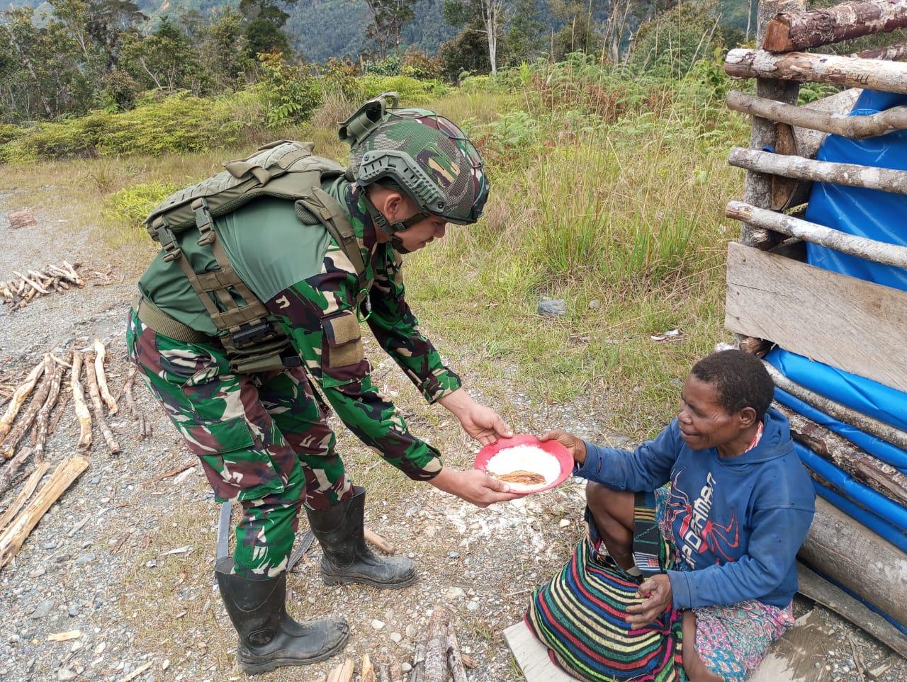 Intan Jaya – Satgas Yonif 509 Kostrad seperti biasa tiada henti membantu masyarakat sekitar pos yang memerlukan bantuan, dengan memberikan makan dan pelayanan kesehatan kepada masyarakat di Pos Bilogai. Selasa (22/04/2024)