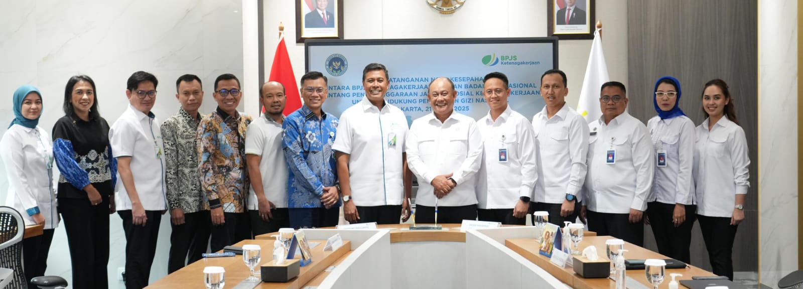 Sinergi antara kedua Badan bentukan pemerintah tersebut secara resmi dikukuhkan lewat penandatanganan Nota Kesepahaman oleh Direktur Utama BPJS Ketenagakerjaan Anggoro Eko Cahyo dan Kepala BGN Dadan Hindayana, Senin, (21/04), di Plaza BPJAMSOSTEK Jakarta.