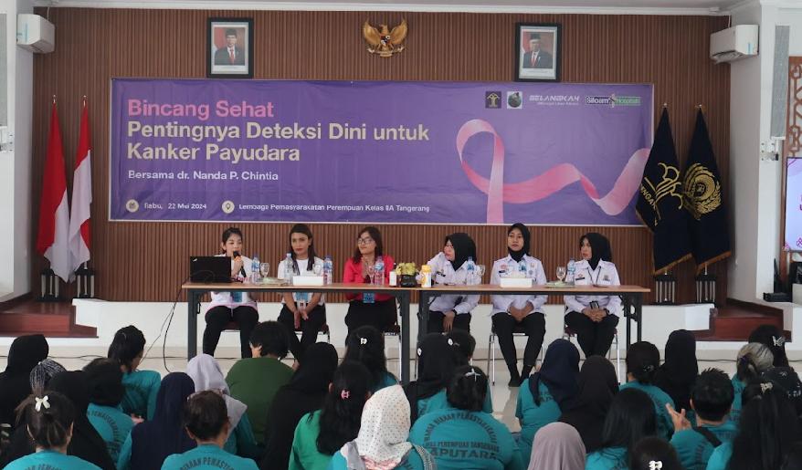 Tangerang, (22/05). Lapas Perempuan Kelas IIA Tangerang laksanakan kegiatan Bincang Sehat Pentingnya Deteksi Dini kanker payudara bertempat di Aula Lapas Perempuan Kelas IIA Tangerang. Lapas Perempuan Kelas IIA Tangerang bekerja sama dengan Rumah Sakit Siloam yang dihadiri dr. Nanda P Chintia selaku narasumber dan didampingi oleh 4 (orang) petugas medis dari RS. Siloam. Kegiatan ini guna meningkatkan kesadaran petugas dan warga binaan pemasyarakatan (WBP) akan bahaya Kanker.
