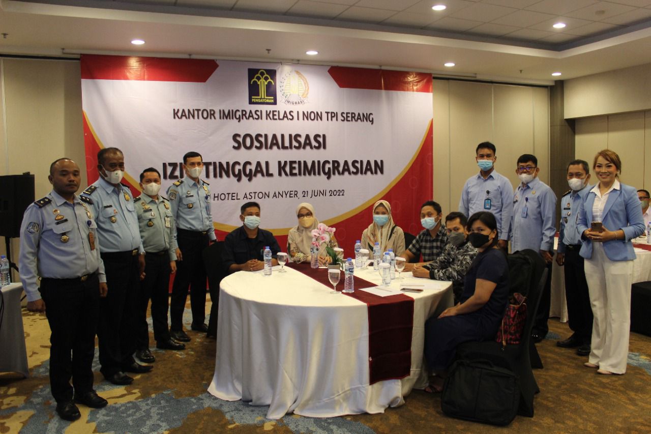 SERANG – Kepala Divisi Keimigrasian (Ujo Sujoto) hadir dalam Sosialisasi Izin Tinggal Keimigrasian yang digelar Kanim Kelas I Non TPI Serang di Hotel Aston Anyer, Selasa (21/06/2022).