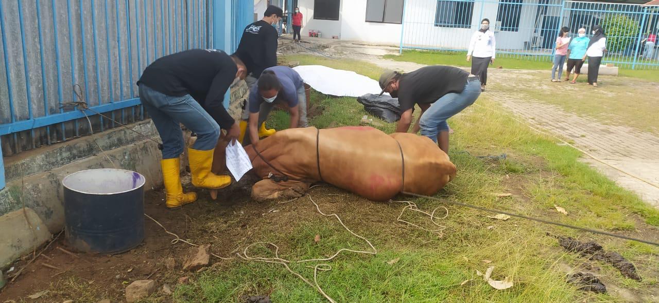 Kegiatan pemotongan hewan qurban dilaksanakan dengan memanggil petugas potong dari Luar Lapas dan dibantu oleh petugas Lapas dengan memperhatikan protokol kesehatan.
