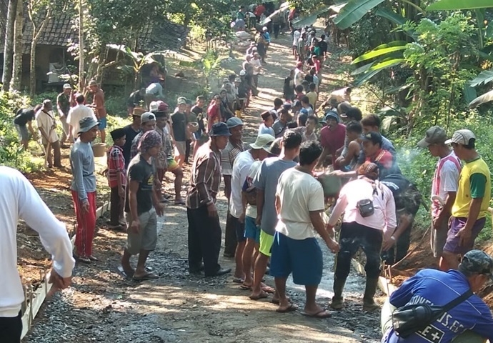 PANDEGLANG – Ratusan warga masyarakat Desa Citaman Kecamatan Jiput Kabupaten Pandeglang, antusias menggencarkan gotong royong untuk membangun jalan desa yang berstatus kabupaten guna memperbaiki jalan karena rusak parah yang sudah lama tidak di bangun oleh pemerintah, jalan tersebut yang di bangun betonisasi secara swadaya.