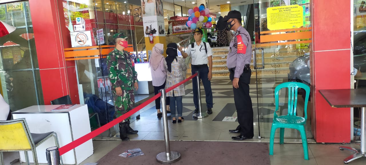 SERANG- Dalam rangka mendukung Pemerintah untuk melaksanakan kegiatan adaptasi baru (AKB) ,Polsek Serang Polres Serang Kota, Polda Banten menyampaikan Protokol Kesehatan di Mall Ramayana Serang, Sabtu (22/08/2020).