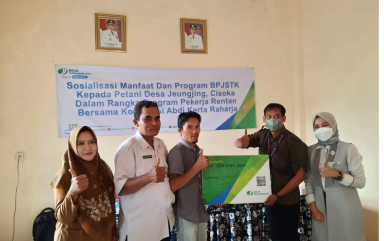 TANGERANG – BPJS Ketenagakerjaan (BPJAMSOSTEK) Cabang Kabupaten Tangerang melakukan sosialisasi program jaminan sosial kepada Kelompok Tani Desa Jeungjing, Kecamatan Cisoka, Kabupaten Tangerang. Senin, (22/08/2022).