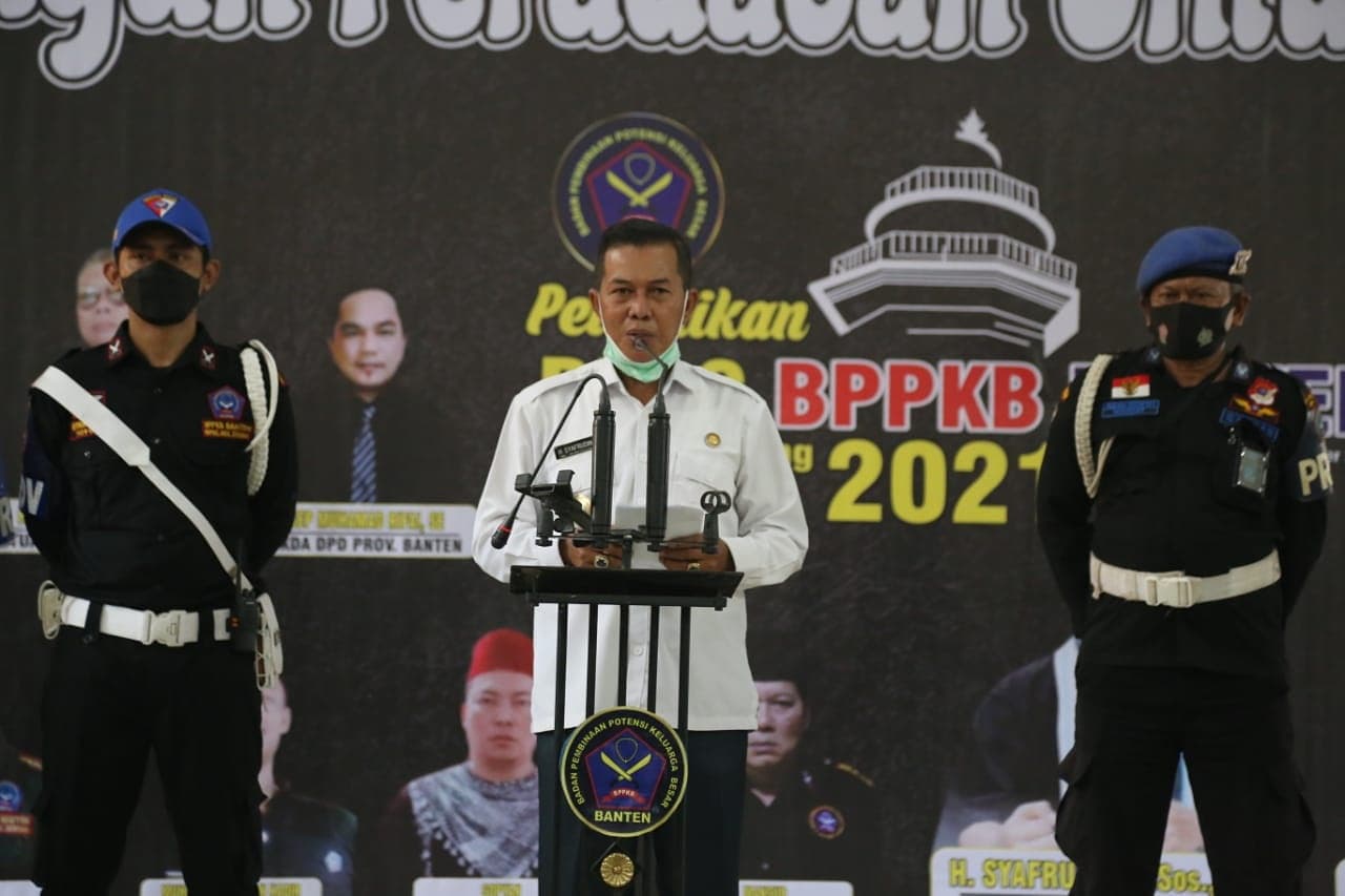 SERANG,- Wali Kota Serang Syafrudin melantik pengurus Badan Pembinaan Potensi Keluarga Besar Banten (BPPKB) DPAC Kota Serang yang diketuai oleh Tb. Anton Masturi sebagai ketua DPC Kota Serang, Rabu (22/9/2021).