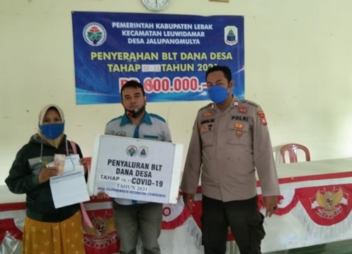 LEBAK – Bhabinkamtibmas Polsek Leuwidamar Polres Lebak Brigadir Kasnadi melaksanakan pendampingan penyaluran Bantuan Langsung Tunai (BLT) tahap 10 dan tahap 11 dari Dana Desa (DD) Tahun 2021, bertempat di Balai Desa Jalupangmulya, Kecamatan Leuwidamar, Kabupaten Lebak, Provinsi Banten, Senin (22/11/2021) Dikutip Bungasbanten.id – Group Siberindo.co