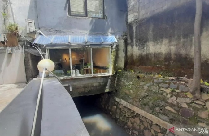 Setidaknya ada lima rumah toko (ruko) yang berdiri di atas saluran air kali Penghubung Bungur di Jalan Kemang Utara Nomor 33 RT 01/RW 04 Kelurahan Bangka, Kecamatan Mampang Prapatan.