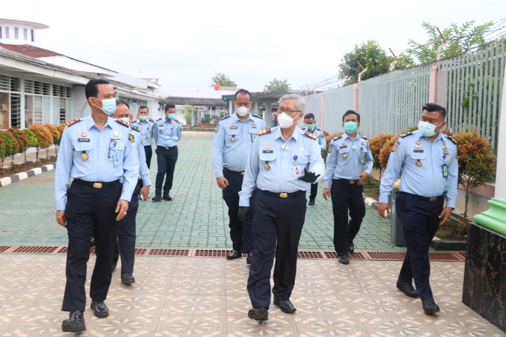 Kepala Kantor Wilayah Kementerian Hukum dan HAM Banten, Agus Toyib juga memantau sekaligus memberikan arahan terkait pelaksanaan penanganan Covid-19 baik kepada pegawai maupun Warga Binaan Pemasyarakatan (WBP).