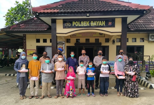 LEBAK – Dalam rangka Jum’at barokah Kapolsek Bayah AKP Suharto dan anggota telah memberikan Santunan kepada 10 Anak yatim dan membagikan sebanyak 40 nasi kotak bekerja sama dengan Ikatan Remaja Mesjid ( Irmas) Nurul Hikmah Kampung Ciwaru Desa Bayah Barat Kecamatan Bayah Kabupaten Lebak Provinsi Banten.