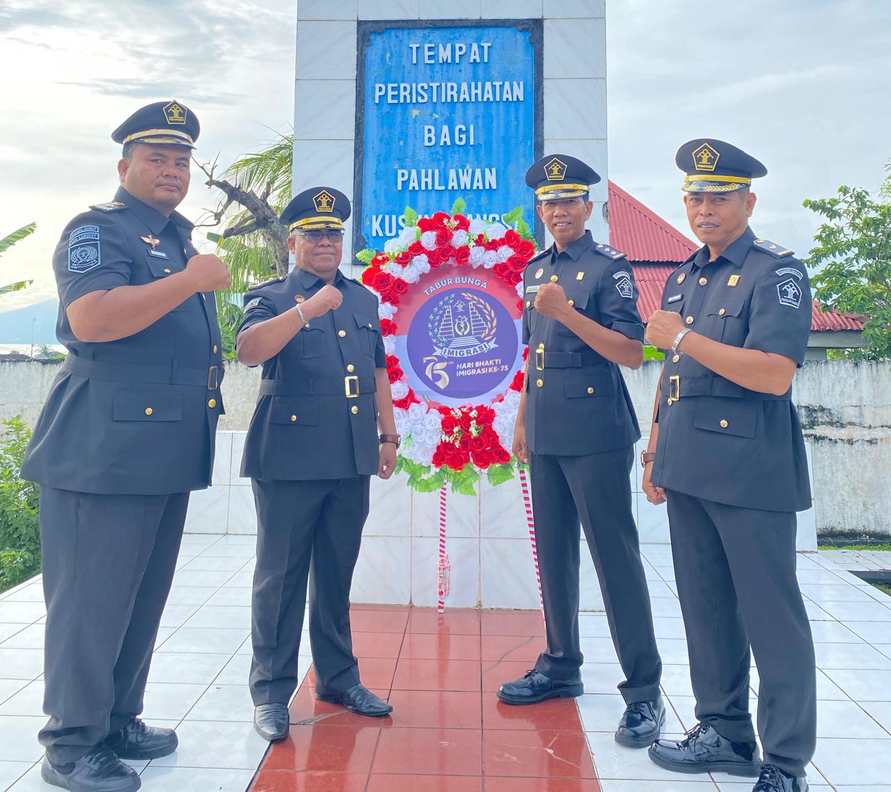 Kakanwil Ditjen Imigrasi Malut, Ian F. Markos memimpin penyelenggaraan upacara tabur bunga, yang dihadiri, para Pejabat Administrasi Kanwil, Kepala UPT Imigrasi dan Pemasyarakatan di Kota Ternate, Dharma Wanita, serta perwakilan pejabat/pegawai setiap kementerian.