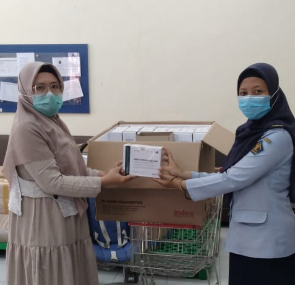 Penyerahan bantuan Alat Rapid Antibody tersebut dilakukan di Gudang Farmasi Dinas Kesehatan Provinsi Banten yang diwakili oleh Petugas Kesehatan Rutan Kelas IIB Pandeglang Hikmah Rakhmawati Eka.