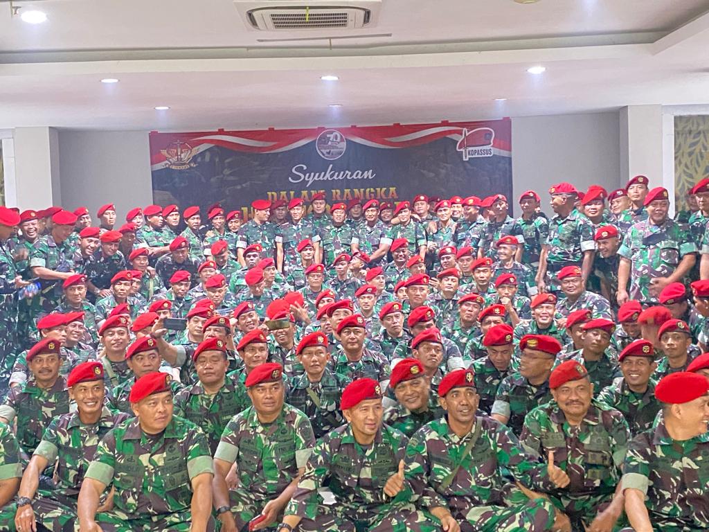 SERANG – Dalam rangka HUT Komando Pasukan Khusus (Kopassus) ke -70, eks prajurit Kopassus menggelar syukuran dengan wadah organisasi yang dibentuk yakni Ikatan Korps Komando Provinsi Banten (IKKPB), di Gedung UPI Center, Kota Serang, Sabtu 23 April 2022.