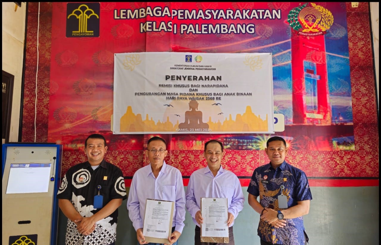 Lapas Kelas I Palembang Serahkan Remisi dan Pengurangan Masa Pidana Khusus Hari Raya Waisak 2024