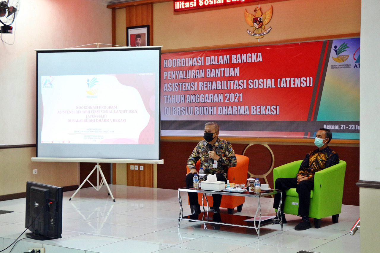 BEKASI (22 Juni 2021) – Merespon semakin kompleksnya permasalahan sosial lanjut usia di Indonesia, Kementerian Sosial melalui Balai “Budhi Dharma” Bekasi sebagai Unit Pelaksana Teknis (UPT) Kementerian Sosial di lingkungan Direktorat Jenderal Rehabilitasi Sosial melaksanakan kegiatan Sosialisasi Program Asistensi Rehabilitasi Sosial (ATENSI).