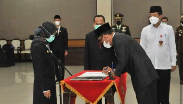 Pelantikan dilaksanakan di Aula Multatuli Setda Lebak secara terbatas, selain secara luring pelantikan juga dilaksanakan secara daring melalui platform zoom meeting, Selasa (22/6/2021).