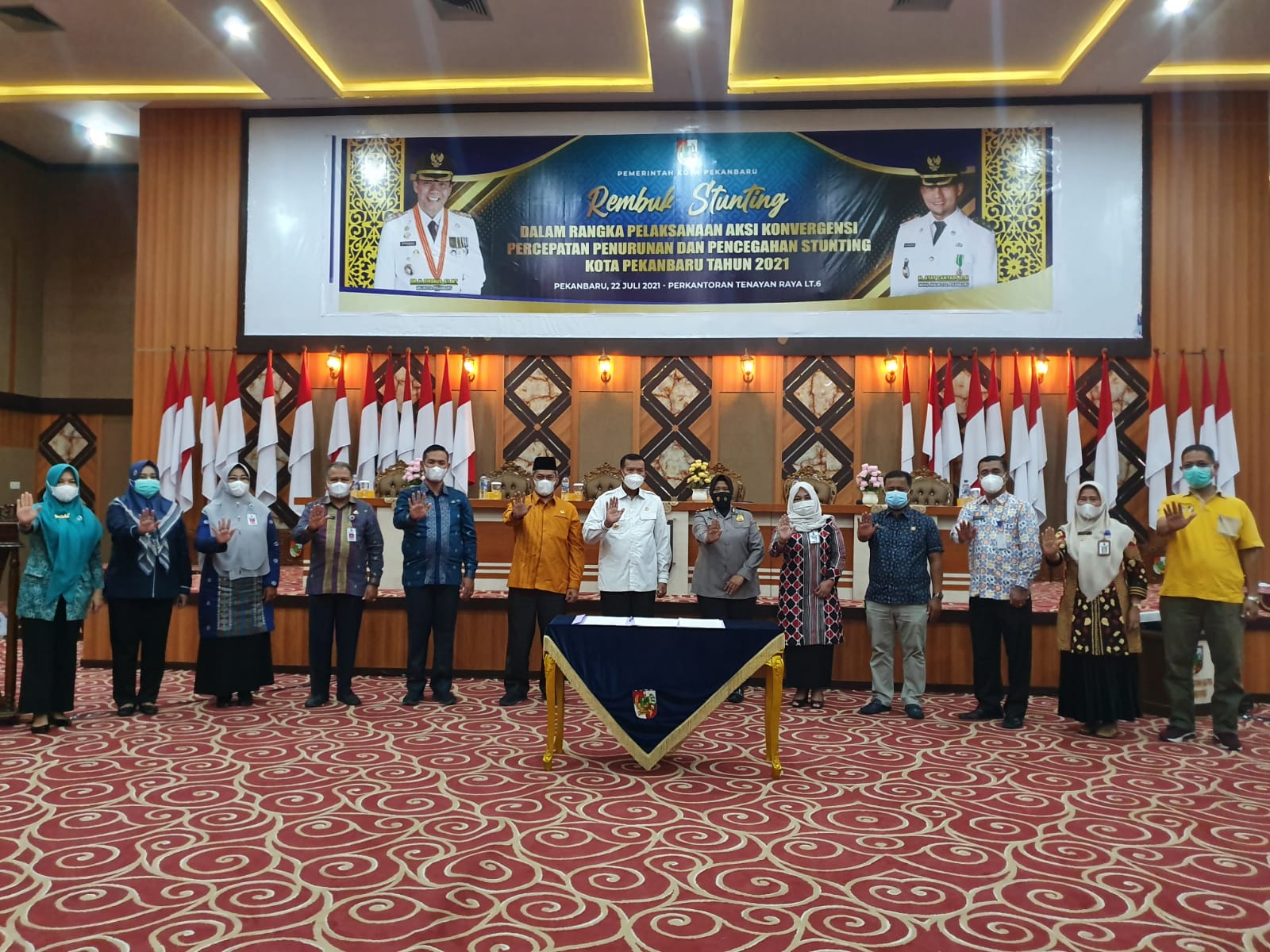 PEKANBARU – Walikota Pekanbaru Dr. H. Firdaus, S.T., M.T menghadiri kegiatan aksi konvergensi percepatan penurunan dan pencegahan stunting Kota Pekanbaru Tahun 2021, Kamis (22/7) di Aula Lantai VI Gedung Utama Komplek Perkantoran Tenayan Raya.