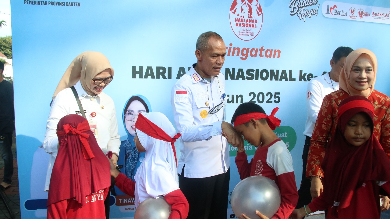 “Pada hari ini hadir 350, mulai dari paud, TK, SD, SMP, dan SMA. Ini merupakan kebahagiaan dan kebanggaan bagi anak anak di Provinsi Banten dan diselenggarakan secara serentak, seluruhnya merayakan hari anak nasional,” ujarnya.