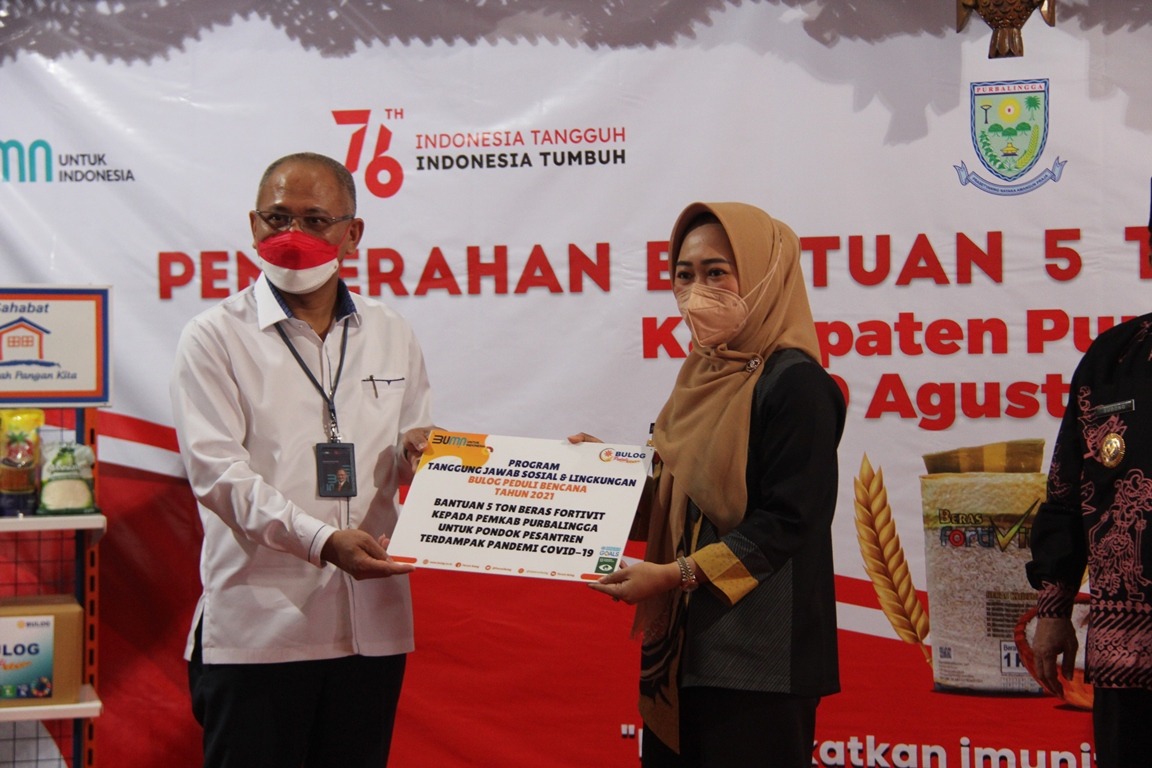 PURBALINGGA – Pemerintah Kabupaten Purbalingga menerima bantuan beras fortivikasi sebanyak lima ton. Bantuan yang berasal dari program atau Corporate Social Responsibility (CSR) Perum Bulog tersebut akan didistribusikan ke 12 pondok pesantren di wilayah Purbalingga.