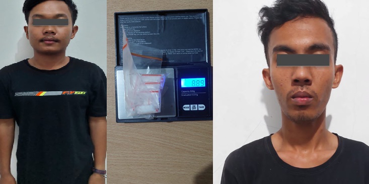 “Dari para pelaku ditemukan barang bukti berupa narkotika jenis sabu sebanyak 20 paket plastik klip bening dengan berat bruto keseluruhan 8,89 Gram, pelaku menyimpan narkotika sabu di dalam lubang ventilasi pintu kamar mandi kontrakan,” ujar Martri Sonny