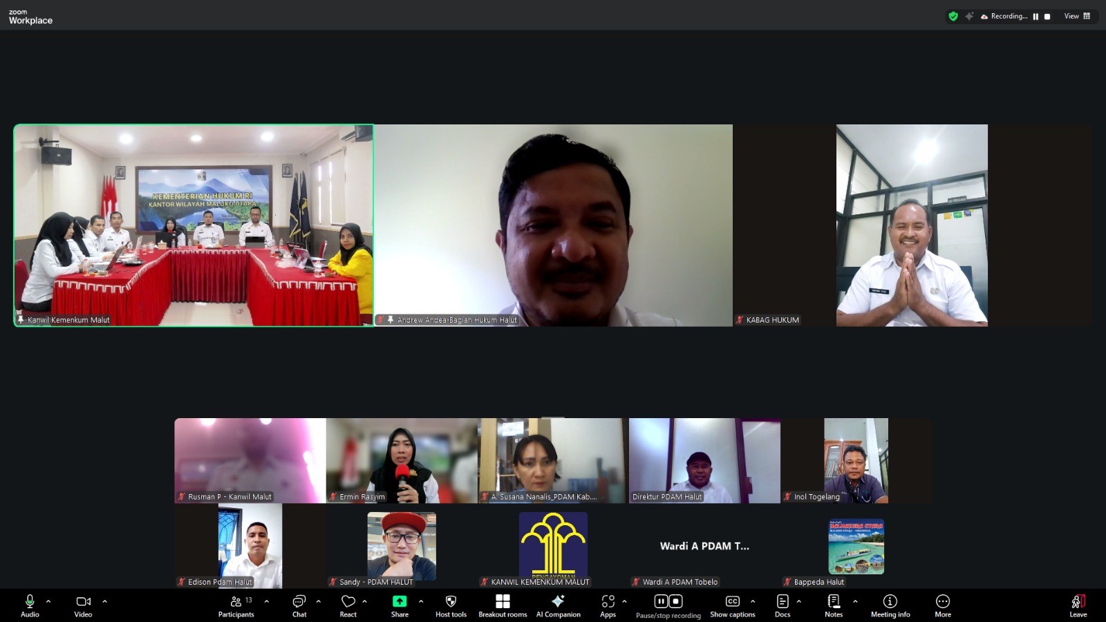 Ternate – Kantor Wilayah (Kanwil) Kementerian Hukum (Kemenkum) Maluku Utara (Malut) menyelenggarakan harmonisasi Rancangan Peraturan Daerah (Ranperda) tentang Perubahan Bentuk Hukum Perusahaan Daerah Air Minum (PDAM) Kabupaten Halmahera Utara (Halut) menjadi Perusahaan Umum Daerah (Perumda) Air Minum Kabupaten Halut.