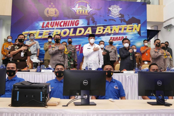 SERANG – Gubernur Banten Wahidin Halim (WH) menyatakan dukungannya terhadap ETLE (Electronic Law Enforcement) atau yang lebih dikenal dengan Tilang Elektronik. Hal itu diungkap Gubernur kepada wartawan usai menghadiri telekonferensi Launching ETLE Nasional dari RTMC (Regional Traffic Management Center) Polda Banten Jl Syech Nawawi Al-Bantani, Banjarsari Kecamatan Cipocok Jaya Kota Serang (Selasa, 23/3/2021).