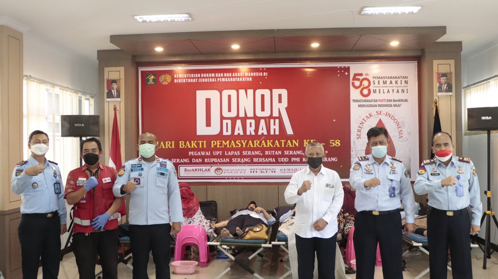 Kegiatan yang menggandeng Palang merah Indonesia (PMI) Kota Serang, dilangsungkan di Rutan Kelas IIB Serang dan diikuti oleh seluruh jajaran pemasyarakatan Se – Serang Raya. Kamis (24/03/2022).