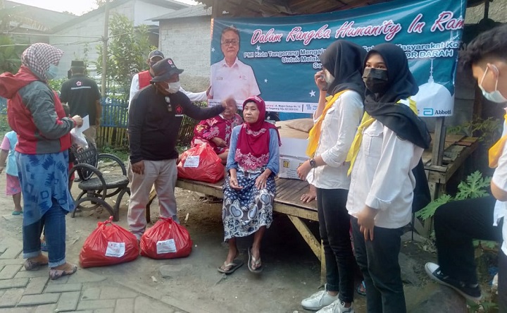 Kota Tangerang – Palang Merah Indonesia (PMI) Kecamatan Pinang, Kota Tangerang menyalurkan paket sembako dan uang untuk janda dan anak yatim di wilayah RT 02 RW 06 Kelurahan Neroktog, Sabtu (24/4/2021).