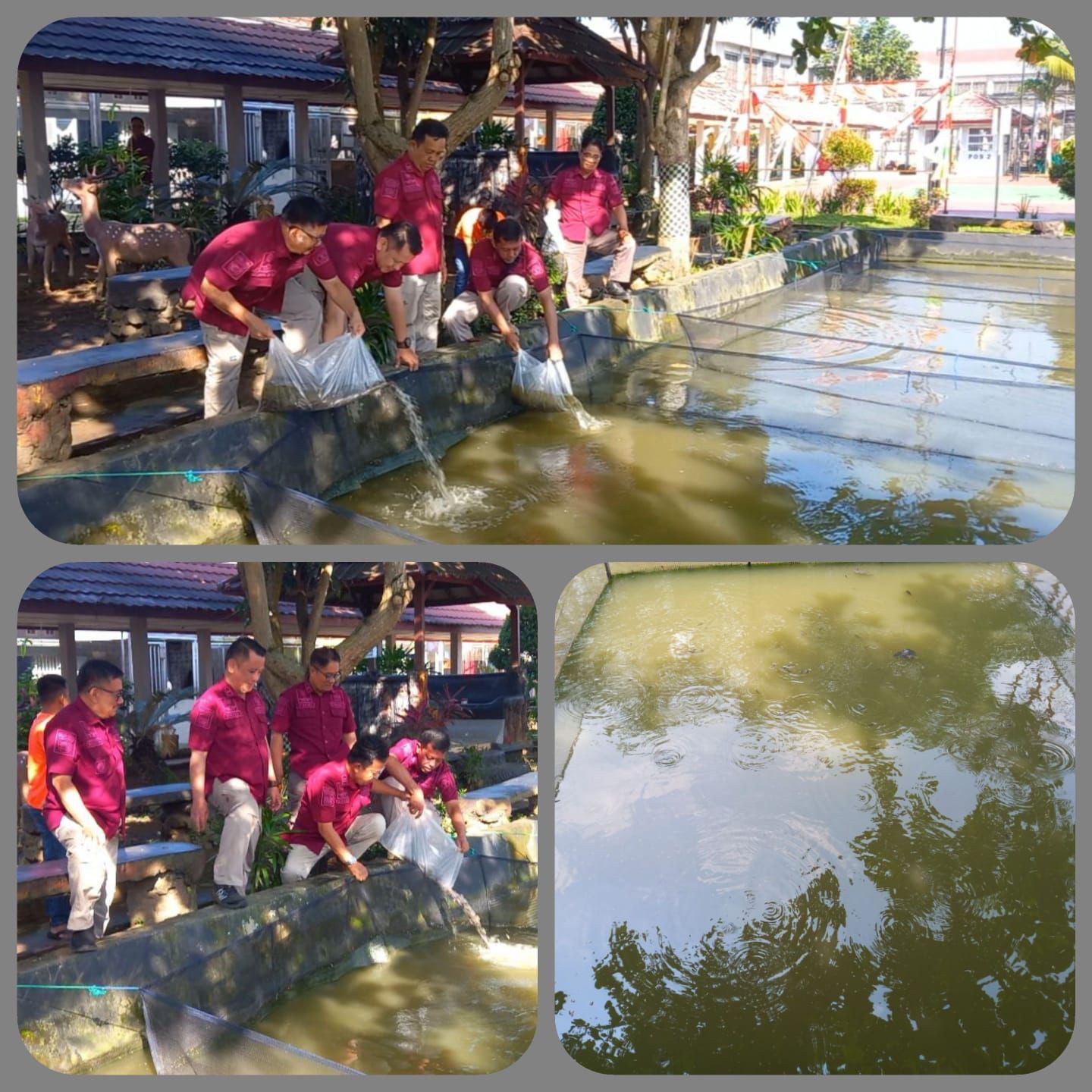 Penebaran 2.000 ekor Bibit Ikan Lele dilaksanakan Oleh Kabid. Kegiatan Kerja Lapas Kelas I Palembang beserta jajarannya.