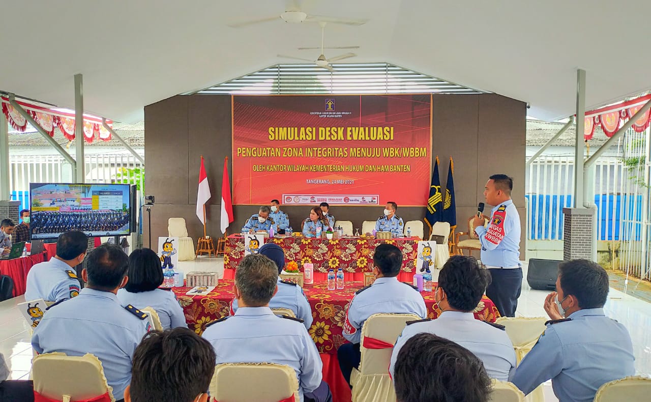 Lembaga Pemasyarakatan (Lapas) Pemuda Kelas IIA Tangerang Sukses mengikuti Simulasi Desk Evaluasi Pembangunan ZI menuju WBK/WBBM yang diselenggarakan Oleh Kantor Wilayah Kementerian Hukum dan HAM Banten di Aula Lapas Kelas 1 Tangerang. Senin (24/05/2021).