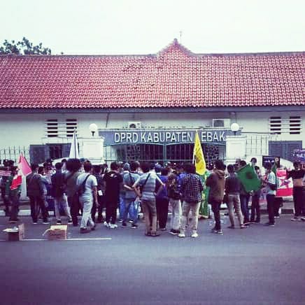 Aksi yang digelar oleh GMNI, Imala, Kumala dan PMII terkait perubahan tata ruang RTRW yang saat ini sedang dalam pembahasan tim Pansus DPRD Lebak.