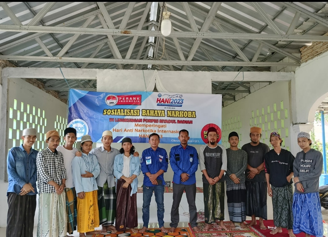 Bertempat di Ponpes Riyadul Ba’diah Kampung Cirogol Desa Cikeusal, Kecamatan Cikeusal. Penggiat Anti Narkoba dari DPP Perkumpulan Anti Narkotika (PERANK) Indonesia menggelar acara sosialisasi bahaya Narkoba kepada para santri, Sabtu, 24 Juni 2023.